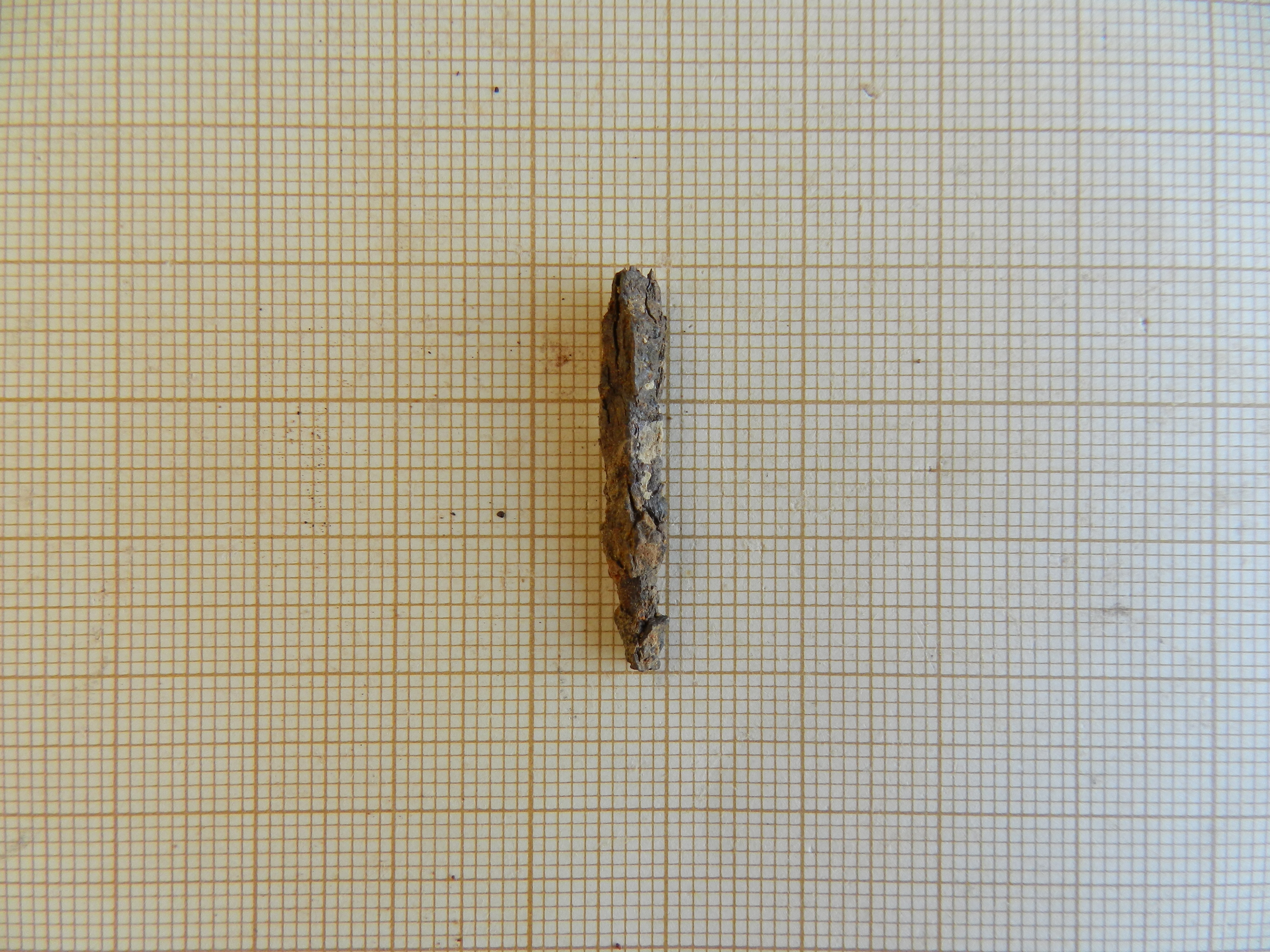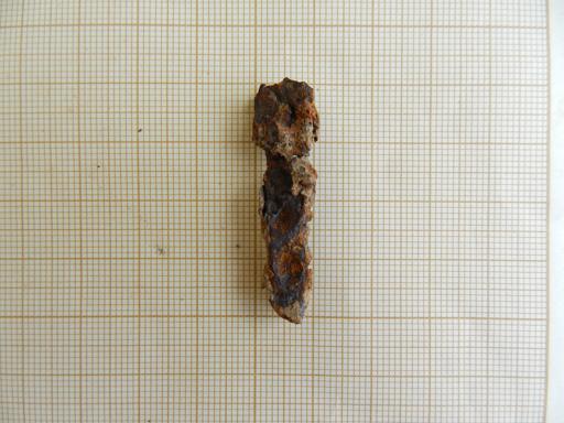 Fragmento de clavo de hierro muy deteriorado por oxidación. Sección rectangular.